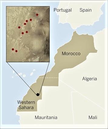 Certainement découverte en 2019, une première pierre d'environ 2,5 Kg baptisée NWA 13250 a été ramassée près de la frontière Algérie/Mauritanie/Mali. Il s’agit d’une rare météorite classée de type "achondrite peridotitic Shergottite" ou "achondrite lherzolitique", originaire de la planète Mars.